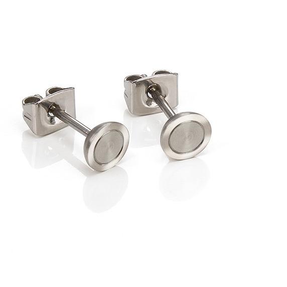 Boucles d'oreilles mixtes rondes en titane mat et brillant, bijoux Boccia titanium anti allergie.