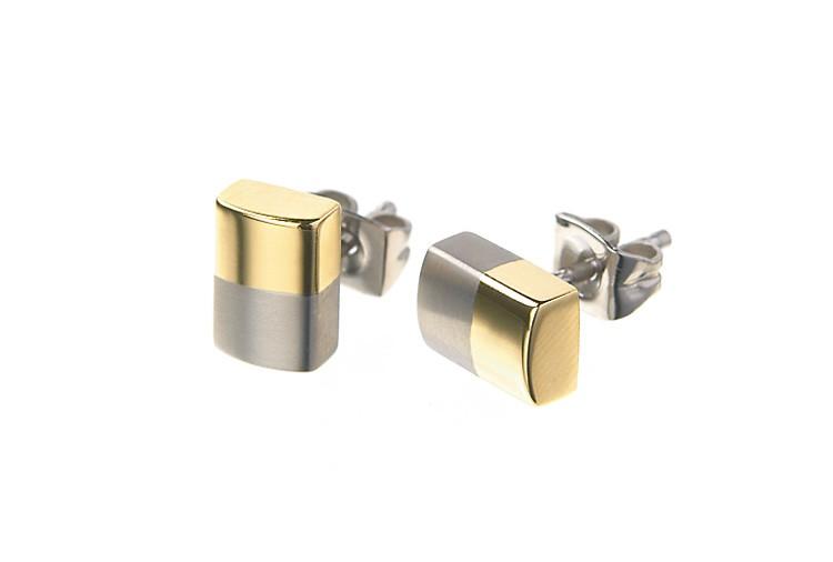 Boucles d'oreilles rectangles en titane mat et plaqué or jaune poli, bijoux Boccia Titanium anti allergique.