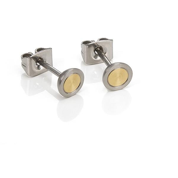 Boucles d'oreilles mixte de forme ronde en titane et plaqué or jaune brossé, Bijoux Boccia Titanium anti allergie.