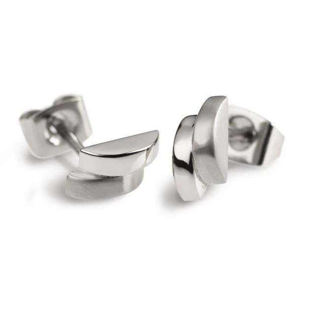 Boucles d'oreilles femme décalées en titane mat et brillant, bijoux Boccia titanium anti allergie et confortables au porter.