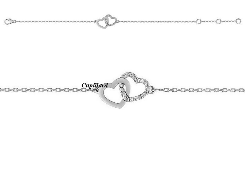 Bracelet femme ou jeune fille coeurs entrelacés en argent 925/1000 rhodié dont un serti d'oxydes de zirconiums.