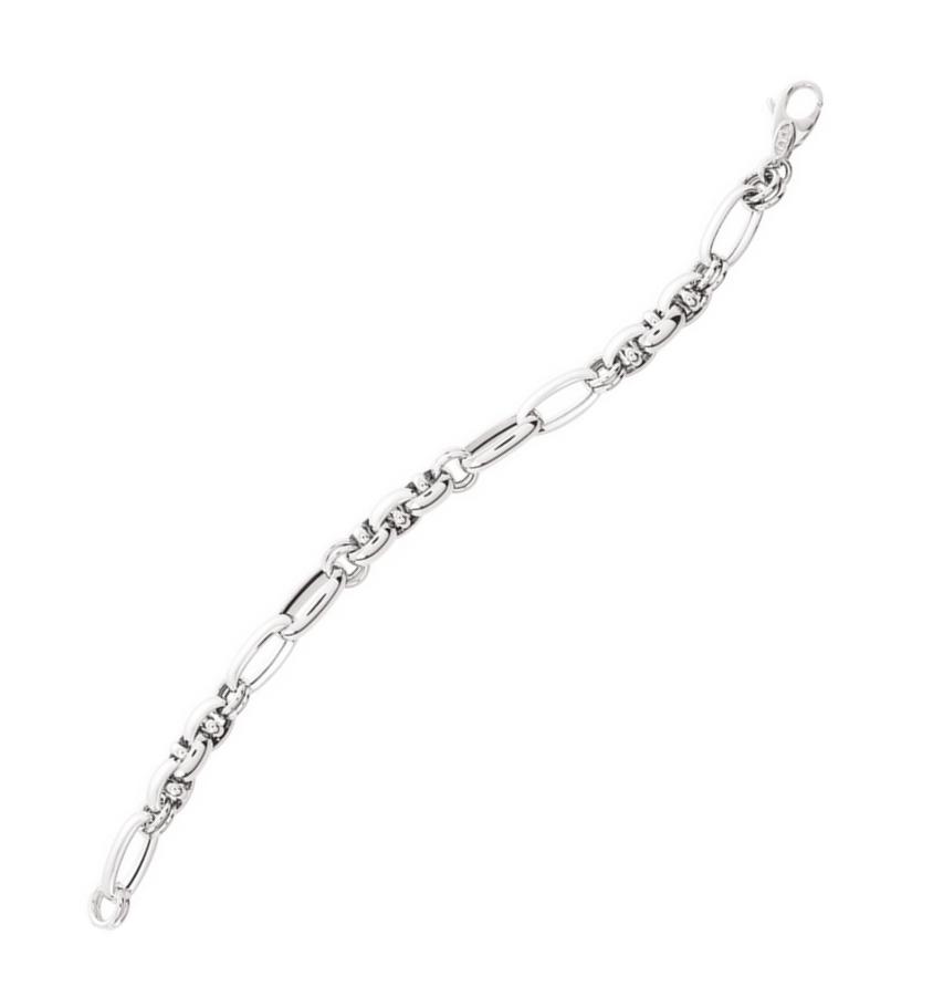 Magnifique bracelet anneaux creux en or gris rhodié poli 750/1000 (18 carats) pour femme, Masviel.