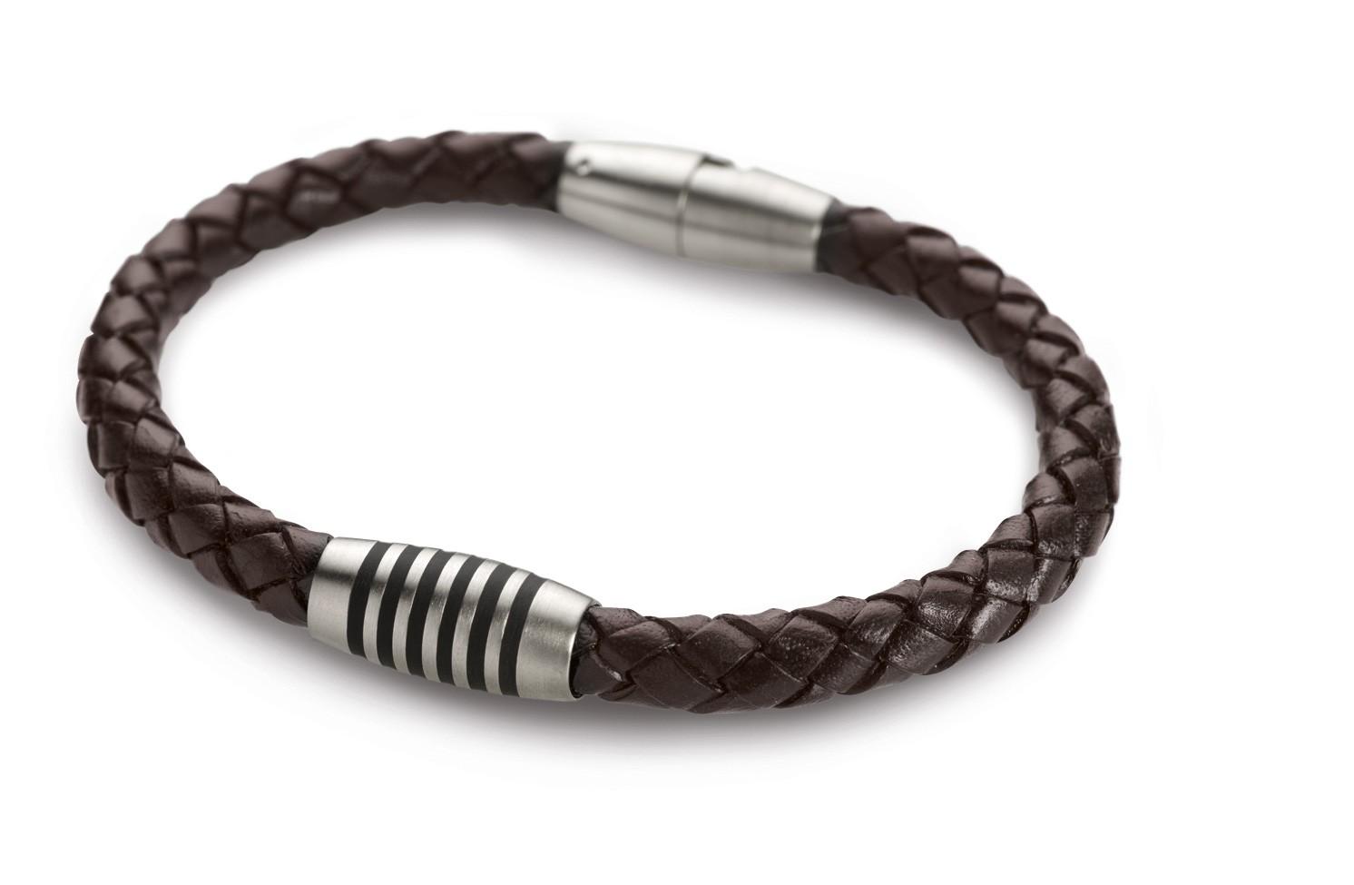 Bracelet cuir tressé marron foncé et titane anti allergique mat avec inserts en émail noir mat,