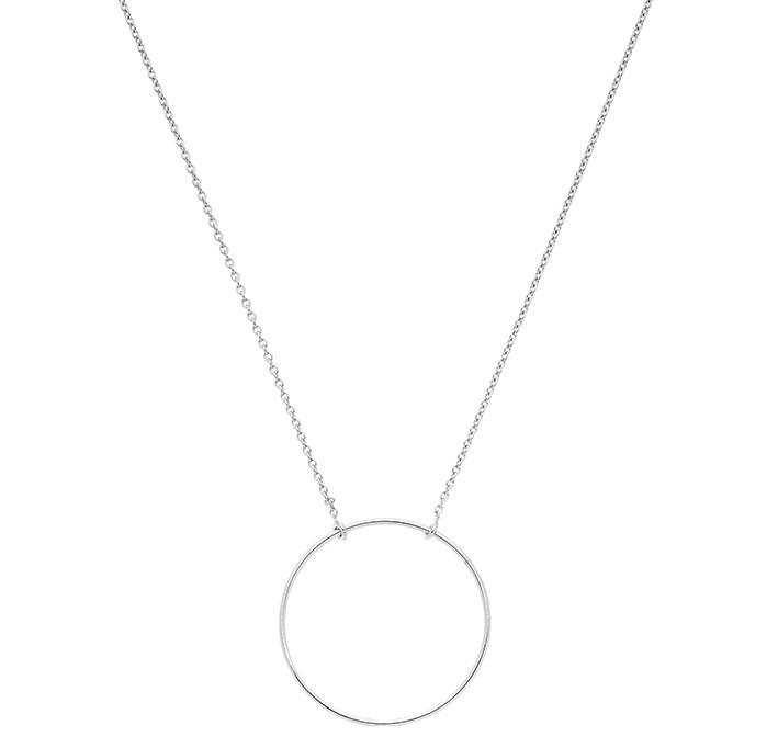 Collier dame Cercle simple 20 mm de diamètre en or gris rhodié 750/1000 (18 carats) sur une chaine maille forçat ronde massive de 45 cm de longueur avec un anneau intermédiaire à 42 cm.