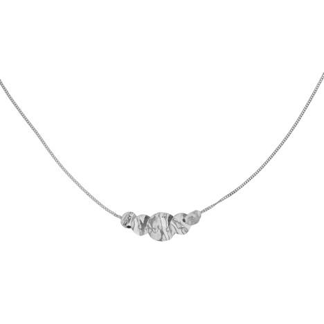 Collier maille gourmette avec 5 pastilles rondes froissées en chute en or gris rhodié 375/1000 (9 carats) de la marque Scarlett Ballet.