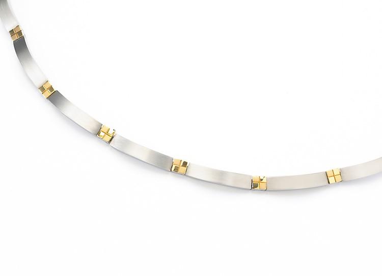 Collier mixte Boccia en titane mat et plaqué or jaune poli,