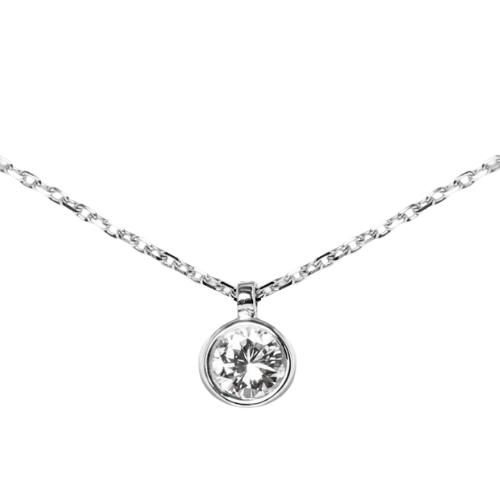 Collier or Gris 750 Solitaire Diamant Serti Clos 0.15 Carat - 7107155
