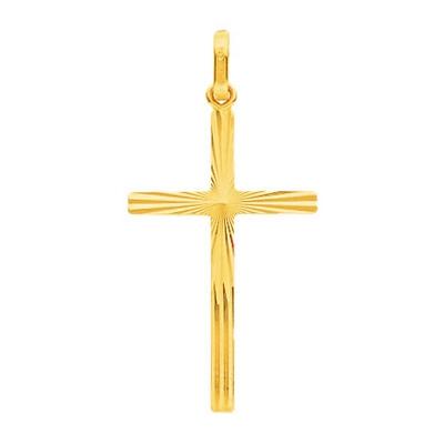 Pendentif croix en or jaune 750/1000 (18 carats) massive et facettée, Hauteur 25 mm, Largeur 15 mm. Fabrication française par Lucas Lucor Paris, Livraison France métropolitaine et Corse offerte. 583700