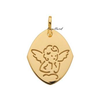Médaille moderne Ange sur un nuage en or jaune 750/1000 (18 carats) en forme de losange.