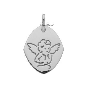 Médaille Ange Nuage Or Gris Rhodié 750 Losange - D23013