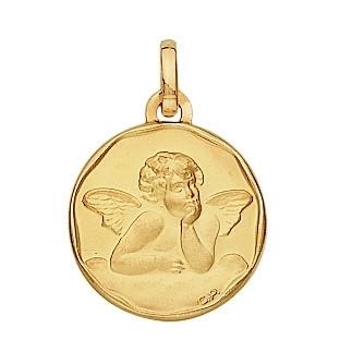 Pour la naissance de bébé ou pour un baptème, offrez ce pendentif Ange de forme ronde en or jaune 750/1000 (18 carats).