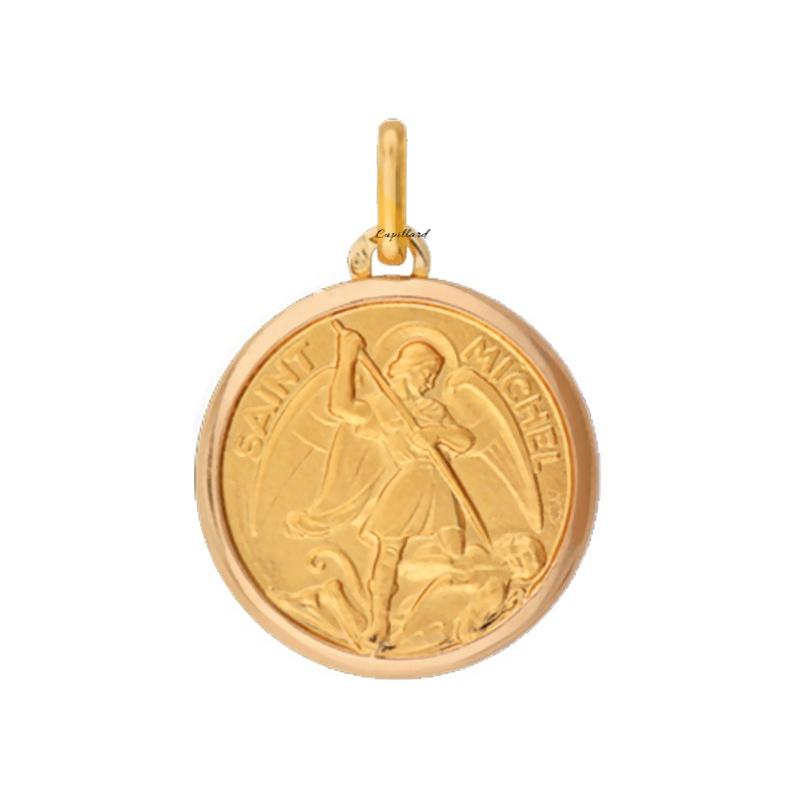 Médaille religieuse Saint Michel ronde en or jaune 750/1000 (or 18 carats).