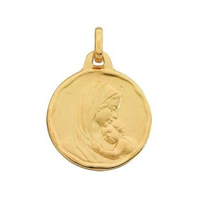 Médaille Vierge à l'enfant en or jaune 375/1000 (9 carats) ronde polie et satinée,