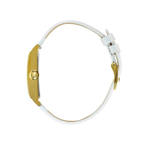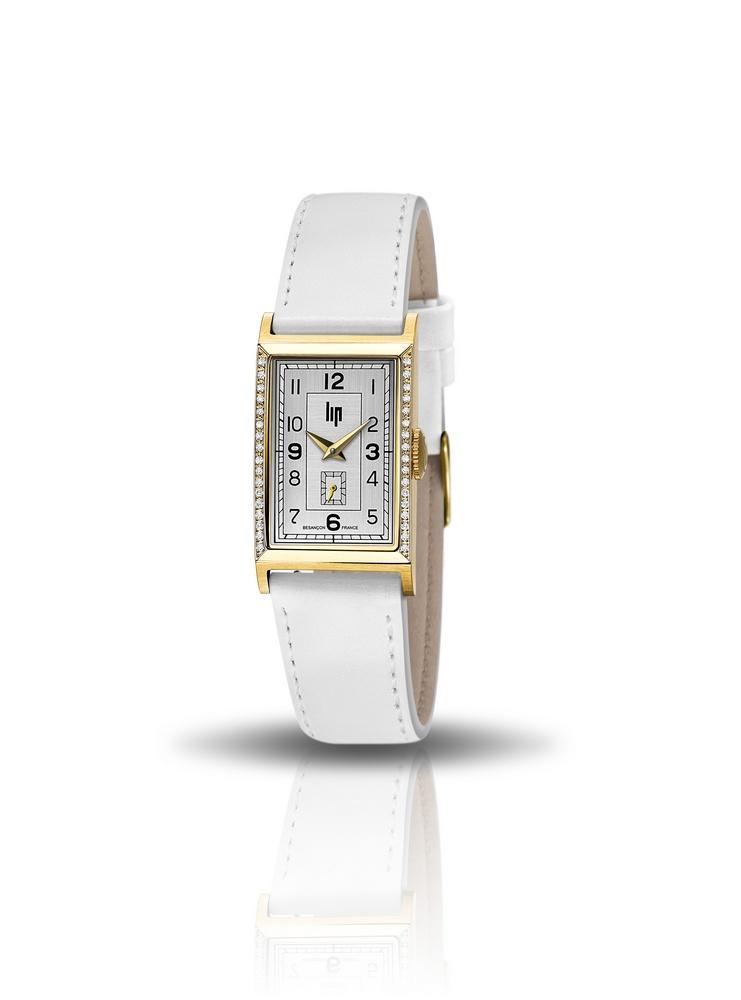 Cette Montre LIP Arbore un Boîtier Rectangulaire en Acier PVD Or Jaune de 21 mm de large, Orné de 34 Diamants. Son Cadran Blanc Argenté, Réhaussé d’Aiguilles Dorées et d’Index Noirs, s’Accorde à un Bracelet en Cuir Blanc à Boucle Ardillon PVD Or Jaune. Elle Abrite un Mouvement Suisse à Quartz Ronda 1064, Protégé par un Verre Minéral Plat. Bijouterie Cupillard Belfort : Boutique Officielle des Montres LIP. 671442