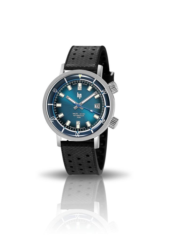 Idéal pour les sports de glisse ou sous marin avec son étanchéïté à 20 ATM (fond et couronne vissés), la montre Lip Grande Nautic Océan Automatique,
