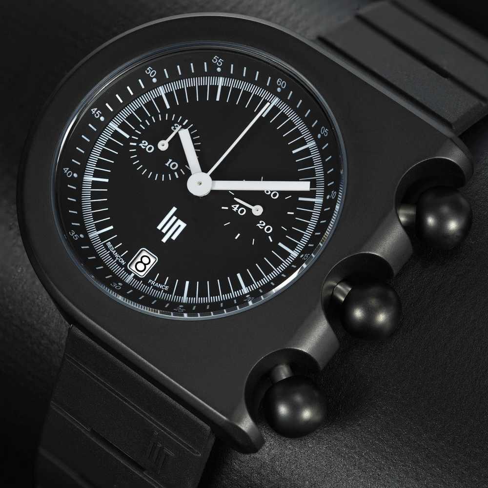 Authentique réplique de la montre originale LIP Mach 2000 Dark Master créée en 1975, ce modèle atypique, revisite les fonctions de la montre habituelle et réussit à pérenniser le savoir-faire français grâce à l'expertise horlogère de LIP.
