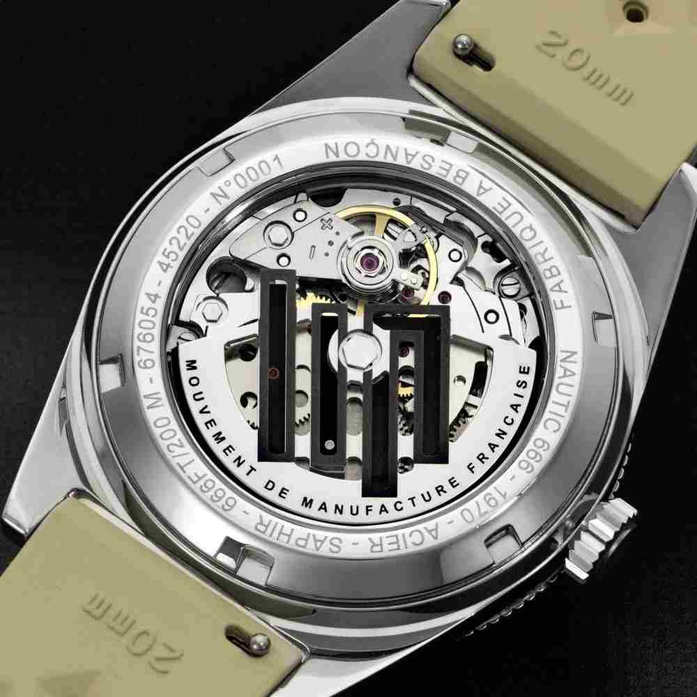 Il s’agit du premier mouvement à remontage automatique de manufacture de la Maison bisontine depuis Fred Lip. Redessiné à l’interne avec le concours de l’école d’ingénieur de Besançon SupMicroTech, il est doté de 42 heures de réserve de marche en pleine charge, d’un stop-seconde et d’un quantième en guichet. Français à plus de 70% en termes de valorisation, il arbore sur son pont de rouage et sa masse oscillante le logo LIP que les oscillations font se superposer comme par enchantement. Intégralement assemblé, emboîté et contrôlé par les maîtres horlogers travaillant dans les ateliers bisontins de LIP :