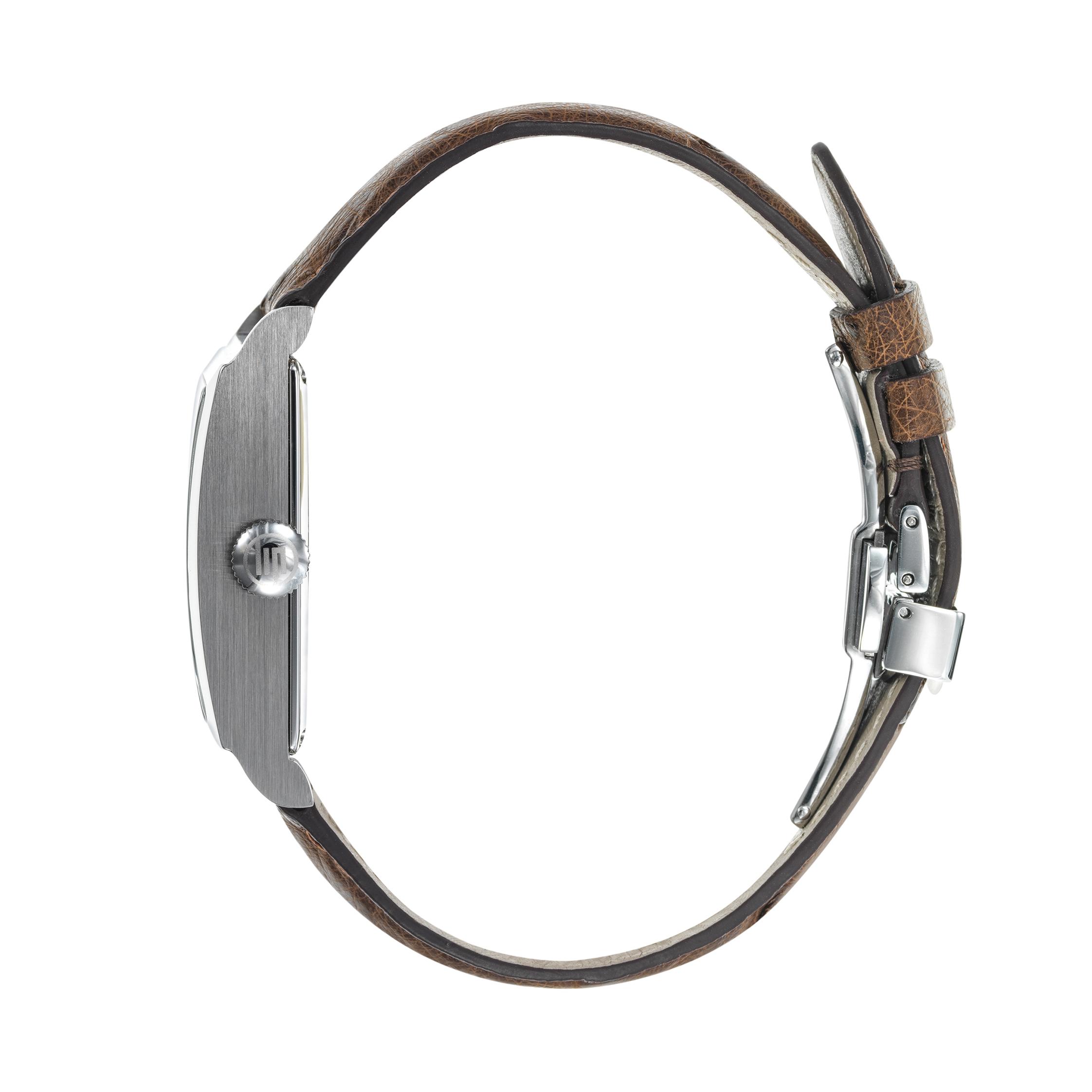 ⋆ Bracelet en cuir d'autruche marron foncé avec une boucle déployante en acier réalisée artisanalement par la société Sibra à Besançon.