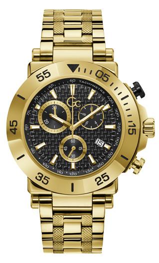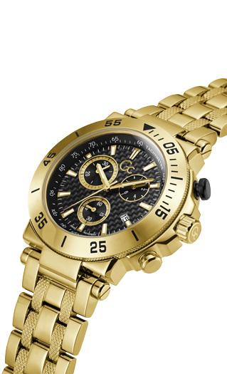Montre GC Chronographe pour homme, boite et bracelet en acier PVD doré poli et brossé, cadran en fibre de carbone noir. MOUVEMENT SUISSE. Livraison France métropolitaine et mise à taille offertes. Y70004G2MF