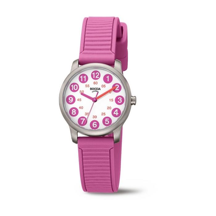 Cette Montre Enfant Boccia Possède un Boîtier en Titane Mat de 28 MM de Diamètre et 7 MM d’Épaisseur. Son Cadran Blanc Facilite l’Apprentissage Grâce aux Chiffres Blancs Entourés d’une Bulle Rose pour les Heures et aux Chiffres Rouges pour les Minutes. Elle est Équipée d’un Bracelet en Caoutchouc Rose de 13 MM de Largeur avec un Fermoir à Boucle, et d’un Mouvement Quartz. Bijouterie Cupillard Belfort : Boutique Officielle des Montres Boccia. 3373.03