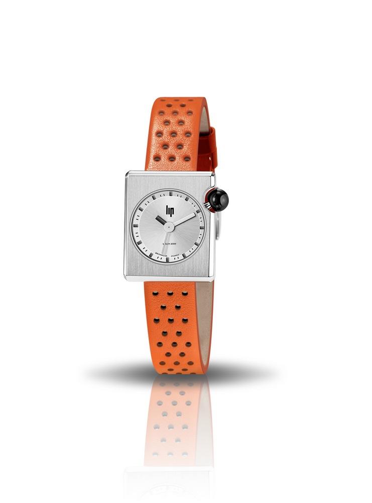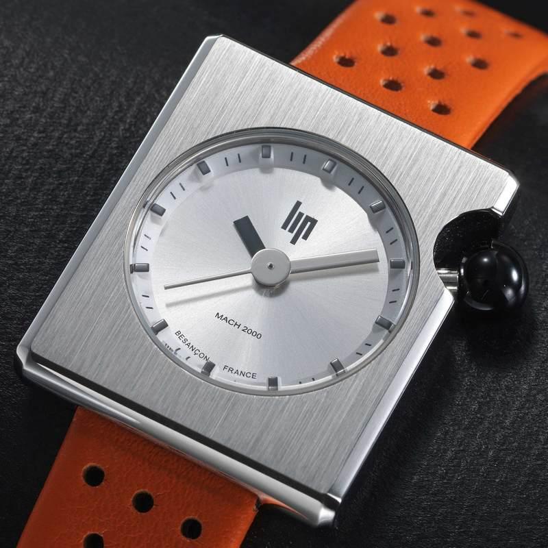 Cette montre Lip à pris forme dans l'esprit du créateur Roger Tallon, créée pour les femmes cette montre Lip Mach 2000 Mini Square en acier brossé est légèrement rectangulaire.