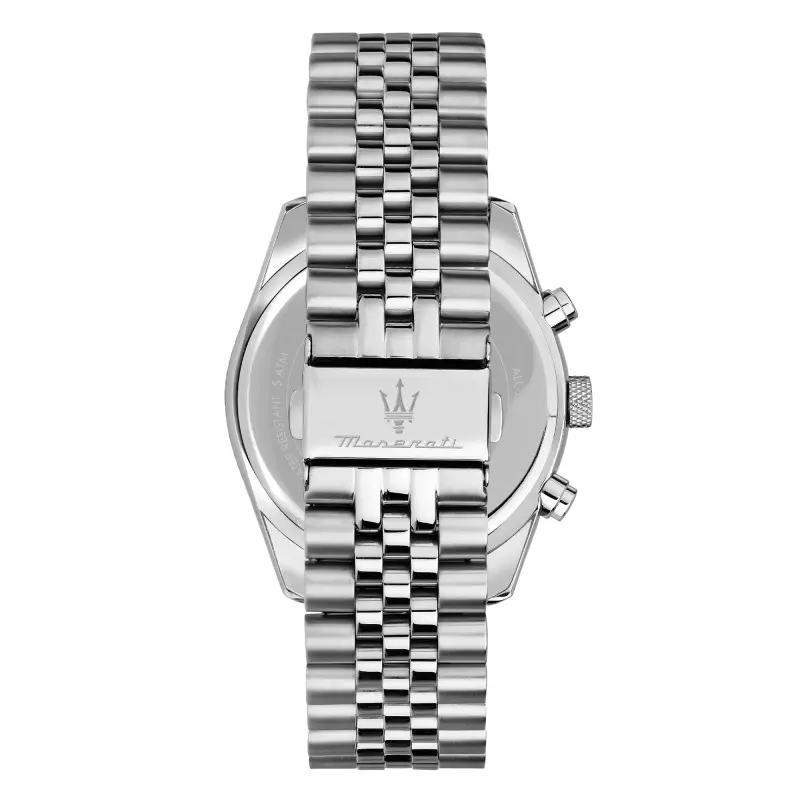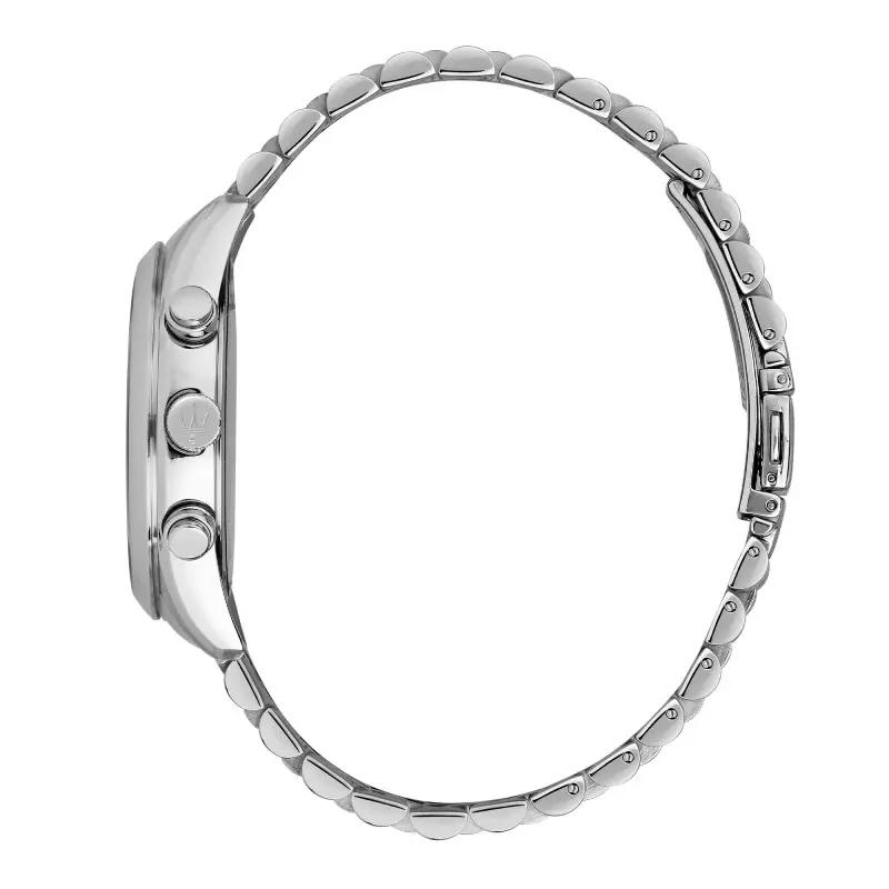 En Version Chronographe, la montre Maserati Attrazione se Porte aussi bien avec une Tenue Habillée ou Décontractée.