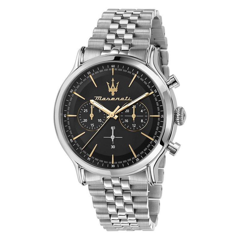 Montre Homme Maserati Epoca Chronograhe, Mouvement Quartz Miyota JS20, Boite de 42 MM de Diamètre et Bracelet Acier Mat et Poli, Verre, Logo Trident Maserati. Mise à taille plus livraison France métropolitaine et Corse offertes. R8873618017