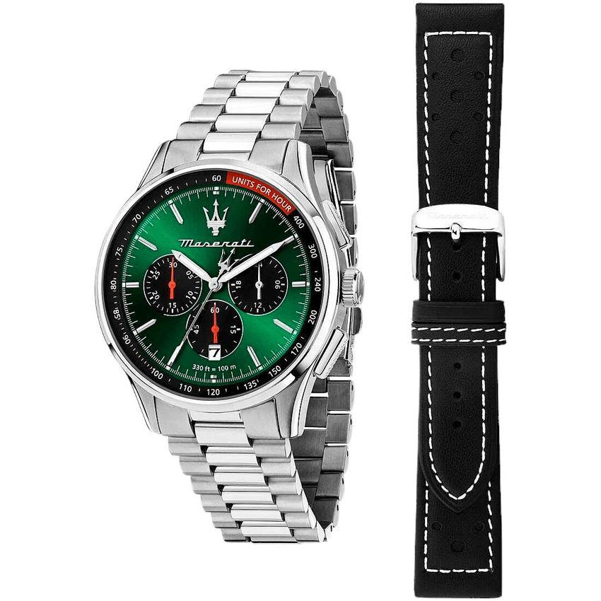 Montre Homme Maserati Sorpasso Chronographe, Mouvement Chronographe Quartz Miyota JS25, Boîtier de 42 mm de diamètre et bracelet en acier, verre minéral, logo Trident Maserati. Cette montre est vendue avec un bracelet Maserati en cuir naturel noir avec surpiqûres blanches, ainsi qu'un outil pour interchanger les bracelets. Mise à taille de la montre et livraison en France métropolitaine et Corse offertes. R8873624002.