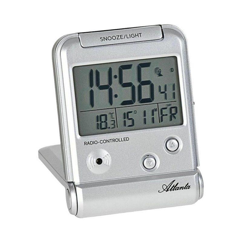 Réveil de voyage à quartz digital radio-contrôlé en plastique gris,