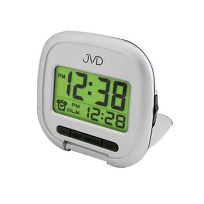 Réveil de voyage à quartz digital en plastique gris, alarme avec sonnerie Bip Bip progressive et à répétition, éclairage cadran vert (Green Light), de la marque JVD.