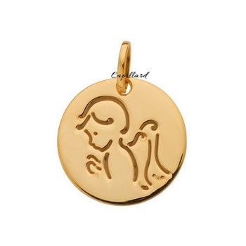 Médaille de baptême ronde, Znge profil gauche en or jaune 750/1000 (18 carats).