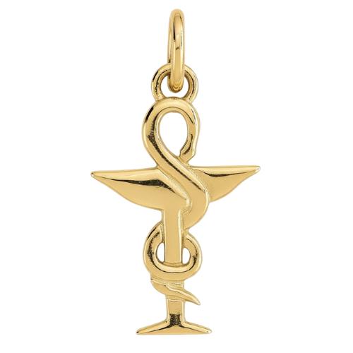 Pendentif Caducée Pharmacie En Or Jaune 18 Carats : Symbole d'Excellence et de Professionnalisme.