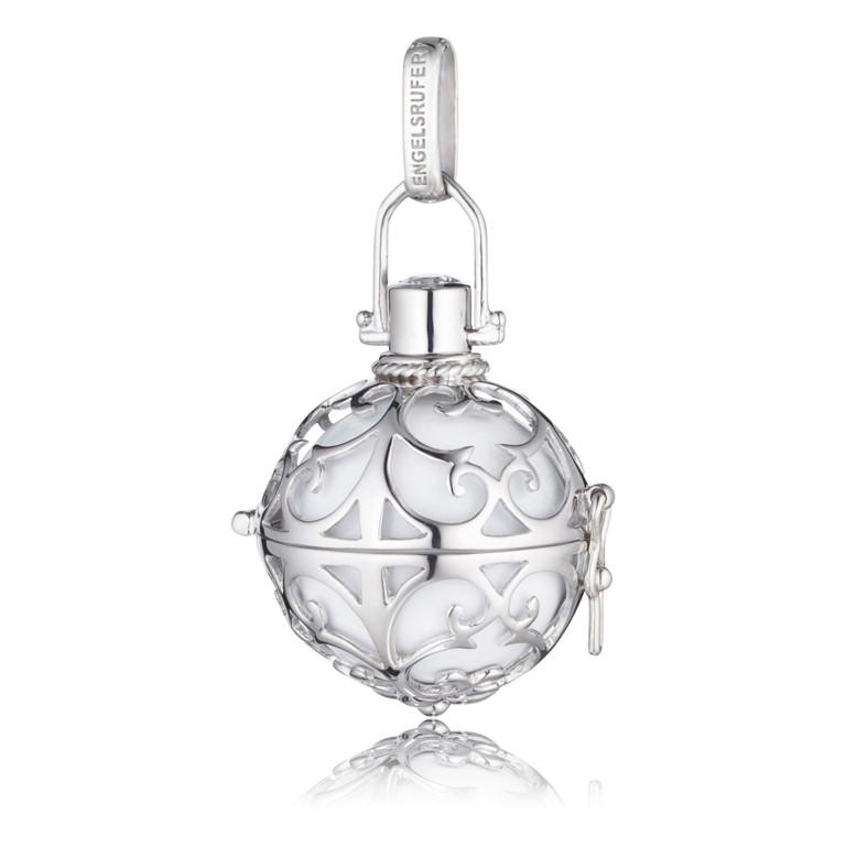 Pendentif Engelsrufer clochette grand modèle 24 mm en argent rhodié 925/1000. Boule musicale blanche, Engelsrufer