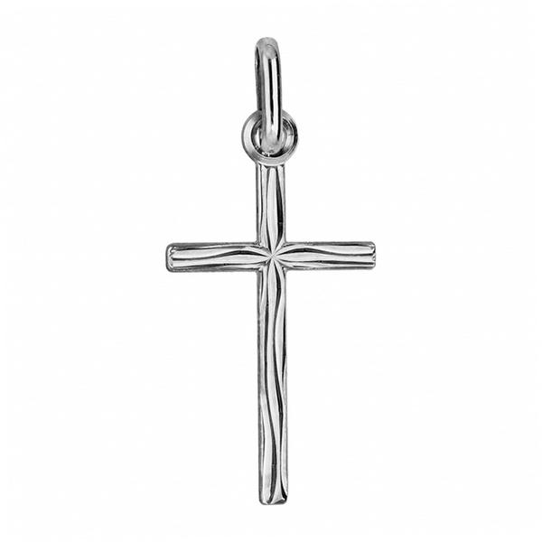 Pendentif croix chrétienne facettée en argent massif rhodié 925/1000.