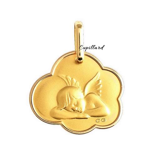 Médaille ange assoupi dans un nuage en or jaune mat et brillant 750/1000 (or 18 carats).