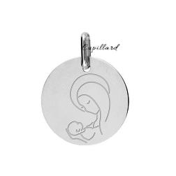 Médaille moderne ronde en or blanc rhodié 375/1000 (9 carats) Vierge à l'enfant par Lucas Lucor