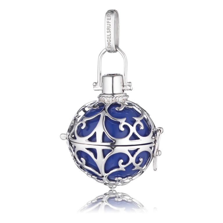 Pendentif sphère grelot grand modèle 24 mm, en argent rhodié 925/1000, boule sonore bleu nuit, Engelsrufer.