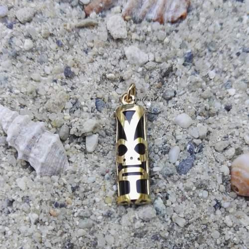 Pendentif tiki Chance 17 mm en or jaune 750/1000 (18 carats) avec un tube en onyx véritable,