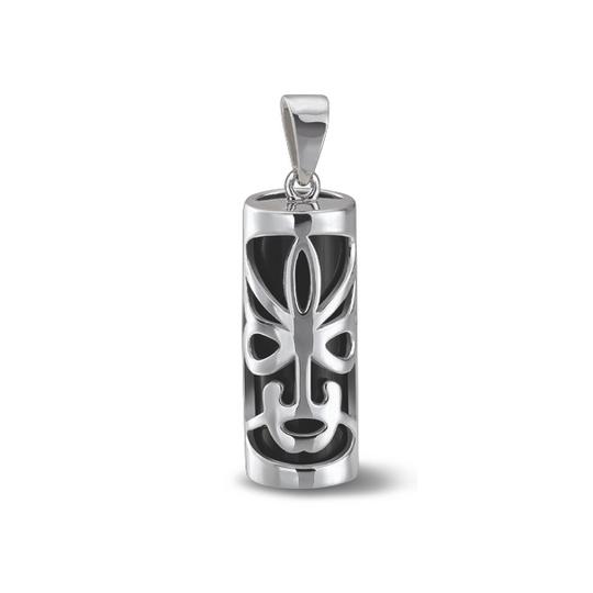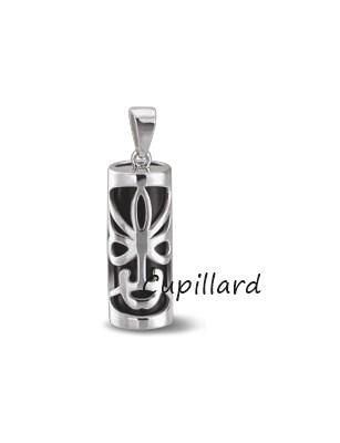 Pendentif tiki Sagesse argent 925/1000 rhodié et onyx, Tiki M'ITIK Sagesse grand modèle 25 mm,