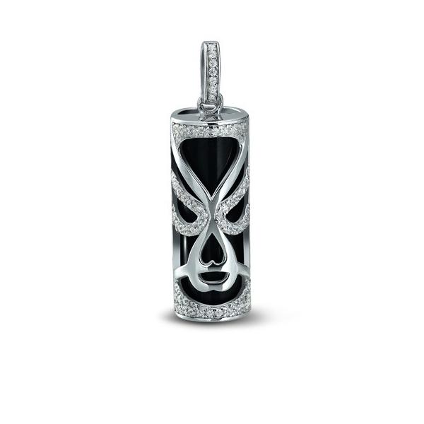 Pendentif Tiki Tendresse M'ITIK en argent 925/1000 rhodié serti de zircons et onyx noir, Tiki Tendresse grand modèle 25 mm.