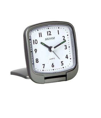 Réveil de voyage à quartz en plastique gris anthracite, sa sonnerie Bip Bip progressive et répétitive vous réveillera à l'heure voulue. Une simple pression sur le verre permet l'éclairage du cadran ainsi vous pourrez lire l'heure au cours de la nuit.
